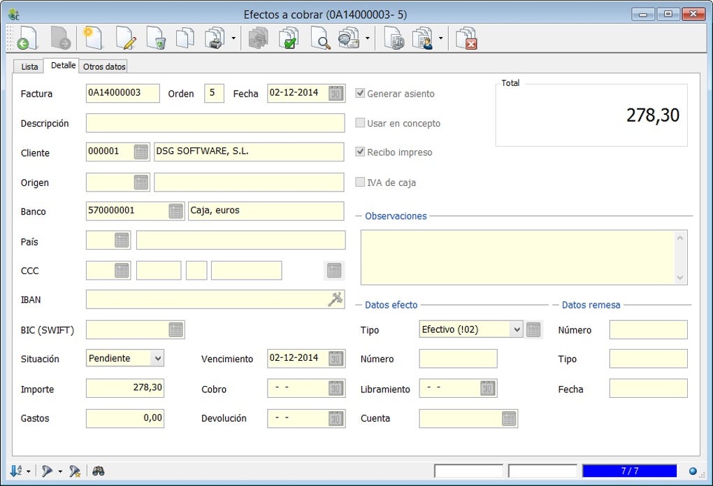Una de las características a destacar de SeniorConta es la capacidad de llevar varias empresas y ejercicios desde una misma instalación. A través de la barra de herramientas, puedes acceder a los listados de clientes, proveedores, facturas, efectos a cobrar y a pagar, etc.